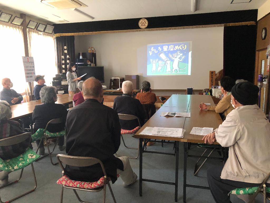 畑区公民館を会場に茶話会などを開催し、奥佐津地区の高齢者が集まり交流しました。奥佐津小学校児童との交流は、警報による休校で残念ながら中止となりました。また、地元の方々の生活支援の一環として、町内移動販売業者の協力により、買い物の機会を提供することができました。ありがとうございました。