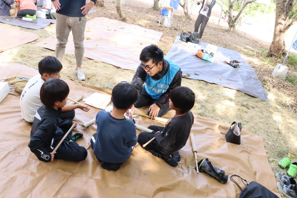 チームでそれぞれ水の補給のタイミングや狙う的の位置取りなど作戦を立てながら熱い戦いを繰り広げました。竹ぽっくり作りも希望者に体験してもらい、竹を使った様々な遊びにチャレンジする楽しさを味わってもらいました。