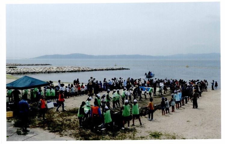 参加者全員で江井島海岸の清掃を行い、その後、江井ヶ島漁業協同組合の協力のもと、地引網を引っ張り、獲れた魚について須磨海浜水族園の方に解説してもらいました。海岸清掃や地引網体験によって、海岸のごみ問題や環境保全について興味関心を持ってもらうとともに、貴重な海の恵みを多くの方々に気づいてもらうことができました。