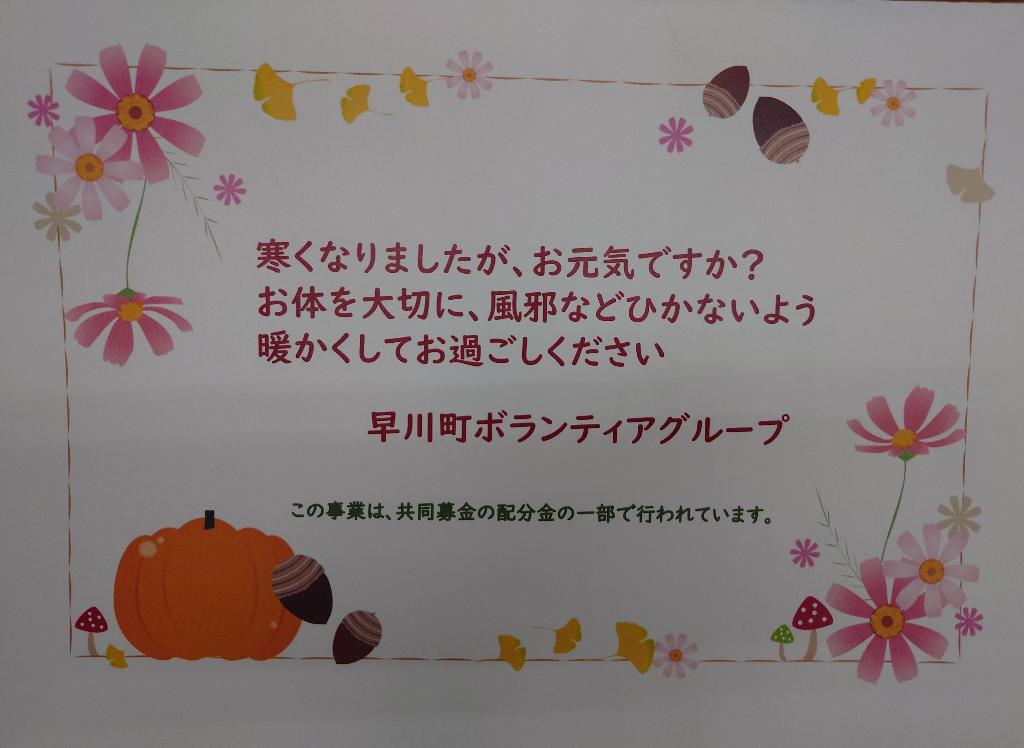 | 活動内容の補足事項 | 施設慰問・年末町内訪問・敬老の日のお便り |