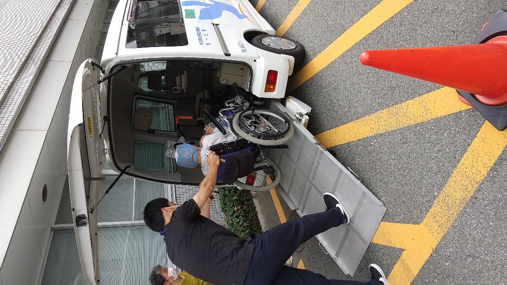 身体機能が著しく低下し、普通乗用車に乗れない方を対象に、スロープ付きの福祉車輌を使って、車いすに乗ったまま自宅から病院までの送迎サービスを行う。また、行政より要望を受けた車いす利用者のコロナウイルス予防接種も行う。