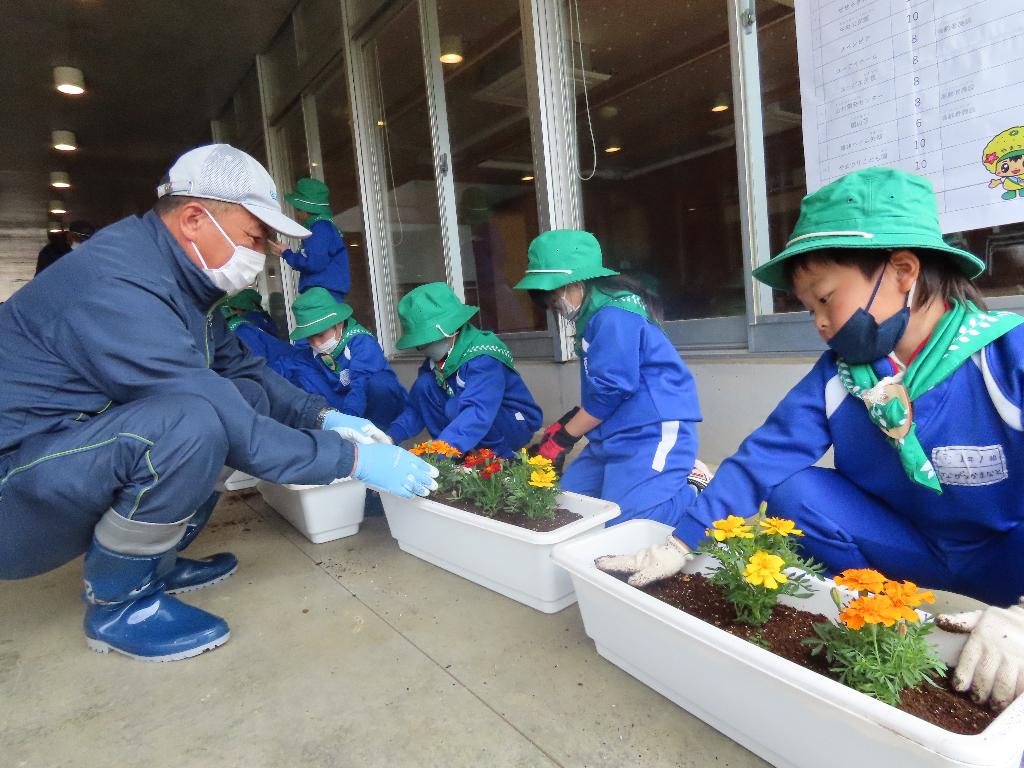 | 活動内容の補足事項 | 児童とボランティア団体とで町内各所に花を植えたプランターを設置 |