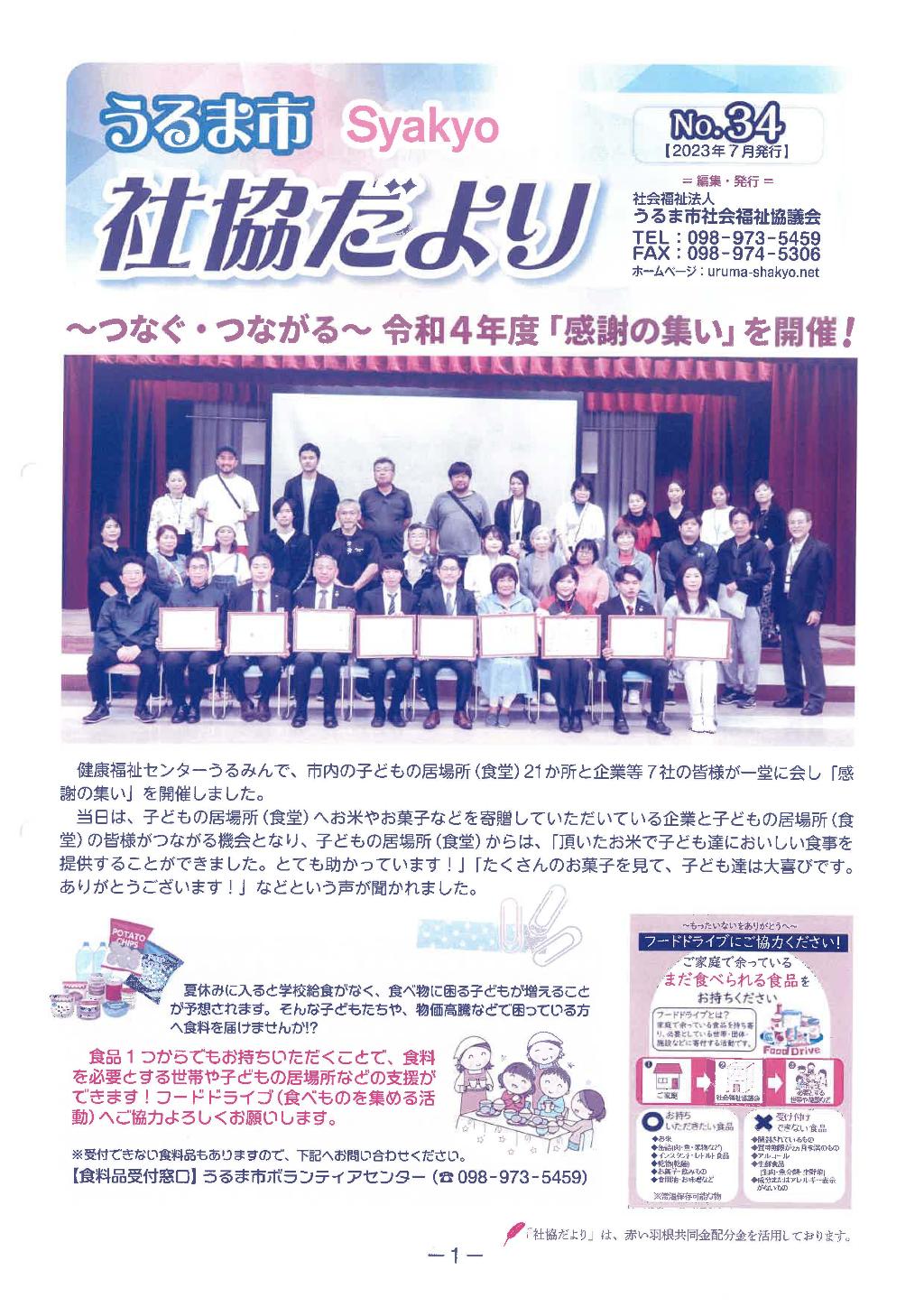 うるま市社会福祉協議会の福祉事業をはじめ、各種福祉団体の活動紹介や共同募金運動などについて情報発信に取り組み、市民をはじめ関係機関・団体等への周知を図り、福祉活動の推進を目的とします。