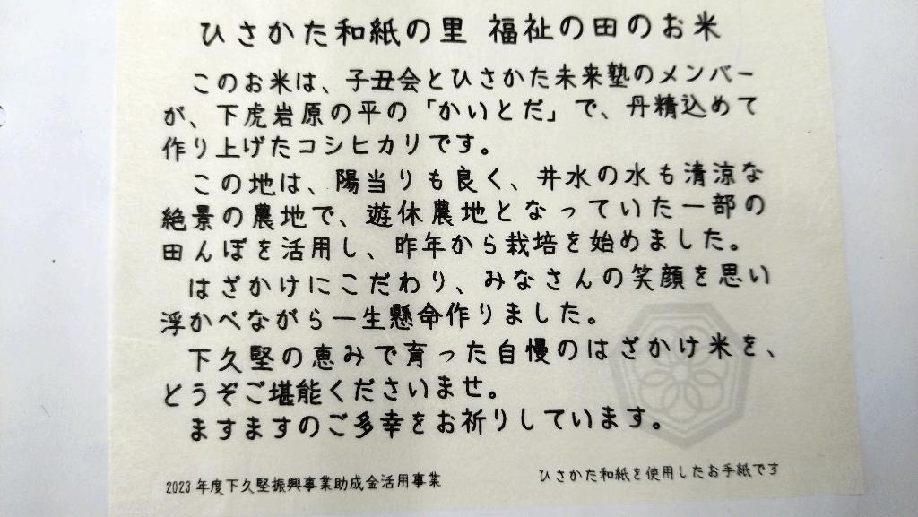 該当する方々へあいさつ文とともに粗品をもって訪問し、さらに独居高齢者・父子・母子家庭の方々には、地区内の団体(子丑会、未来塾)から寄付されたお米を添えてお配りしました。