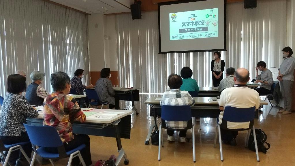 高齢者を対象としたスマホ講座を開催し、高齢者が仲間同士のつながりや便利なアプリを活用して情報を得たりできるよう開催しています。