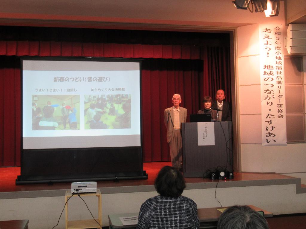小地域福祉活動リーダー研修会として「考えよう!地域のつながり、たすけあい」をテーマに実践発表を講演をして頂きました。