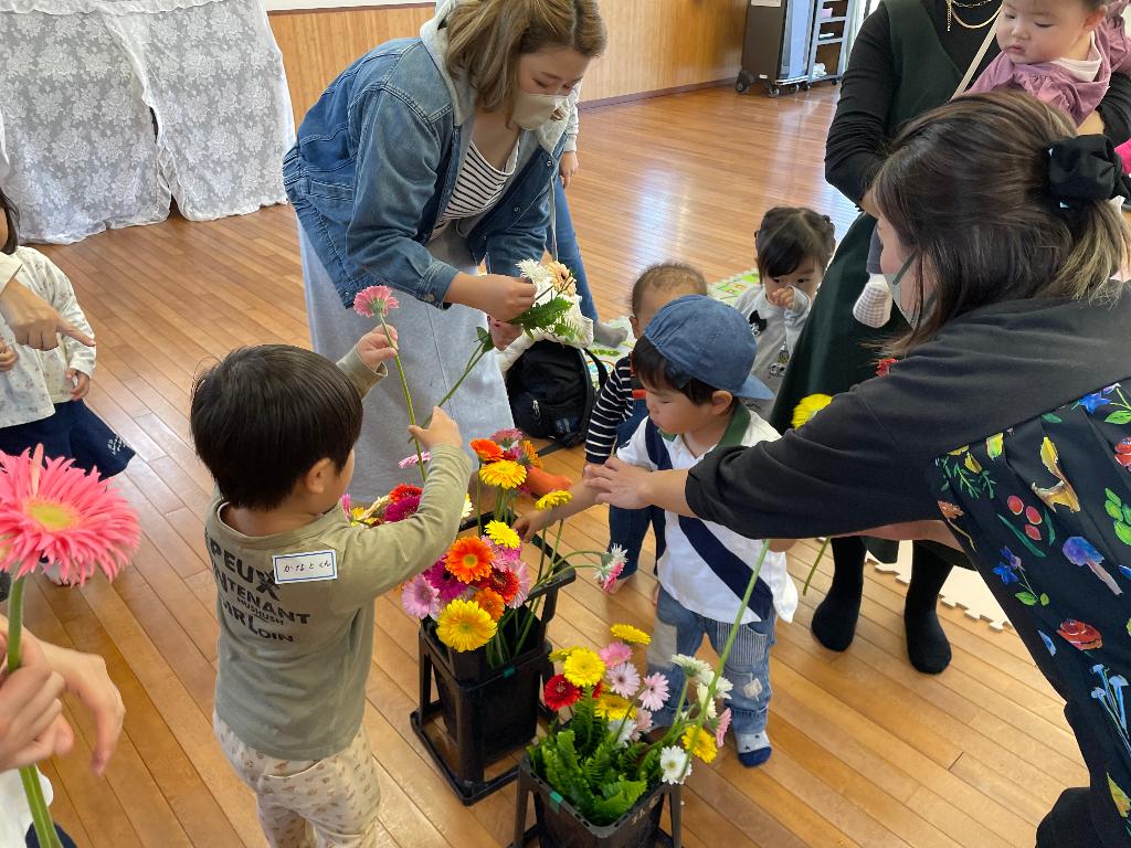 子育てサロンにて親子ヨガ教室を開催し、ゆったりとした気持ちで身体をほぐしていただきました。また、フラワーアレンジメントでは、町で育てられたガーベラのお花を使い、お花を通じて子どもたちの感性や思考を育てる花育をおこないました。お母さんは、そっと見守り素敵なオリジナルアート作品が出来上がり、保護者もスタッフも感動しました!親子で楽しむ活動支援をこれからも続けてまいります。ありがとうございました。
