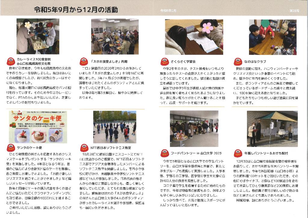 ・場 所:山口市内3ヶ所(①大内みんな元気食堂 ②小郡みんな食堂 ③えがお食堂よしき)