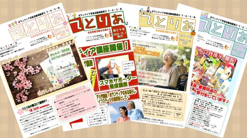 ボランティア・市民活動をしている個人・団体の為の相談支援・コーディネートを行っています。年4回「広報紙て・と・り・あ」を発行し、市民の方へボランティア・市民活動について広く周知しています。
