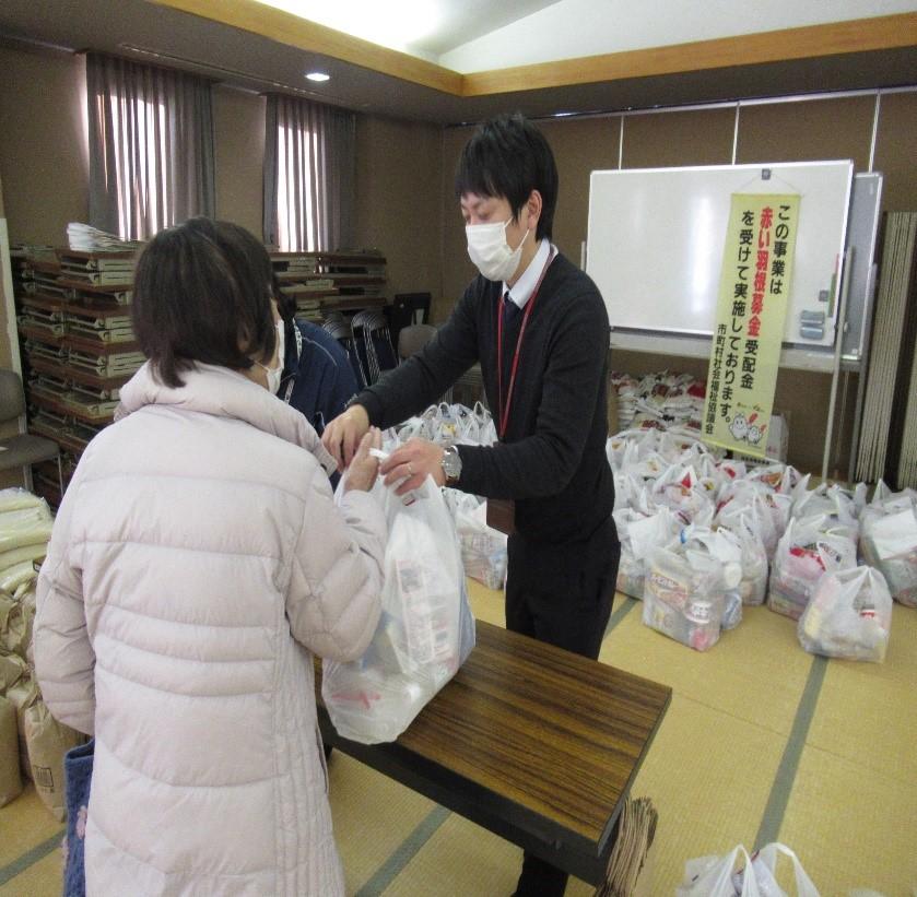 令和4年度より「支え合いフードパントリー事業」として共同募金配分金を活用し、事業を継続しています。令和5年12月27日に行った年越しフードパントリーでは、ひとり親家庭や生活困窮世帯を対象として、合計200世帯に食品等の配布を行いました。
