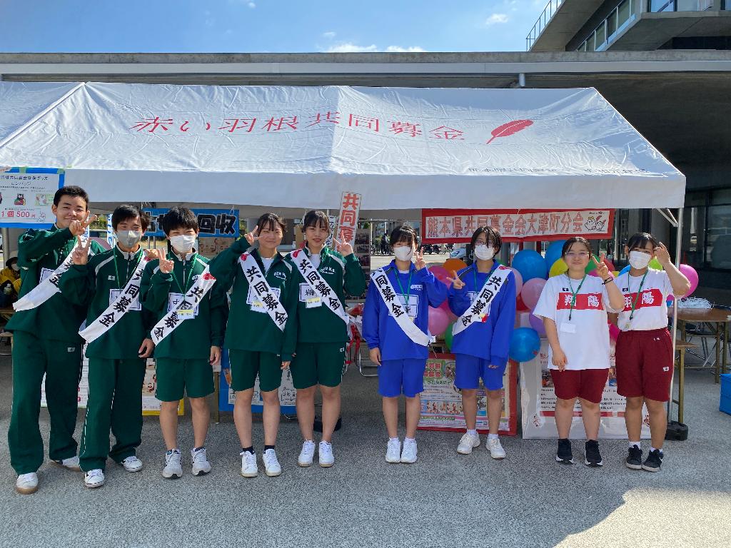 写真は10月に協力校の児童生徒さんがボランティア活動として行った、赤い羽根共同募金の街頭募金の様子です。