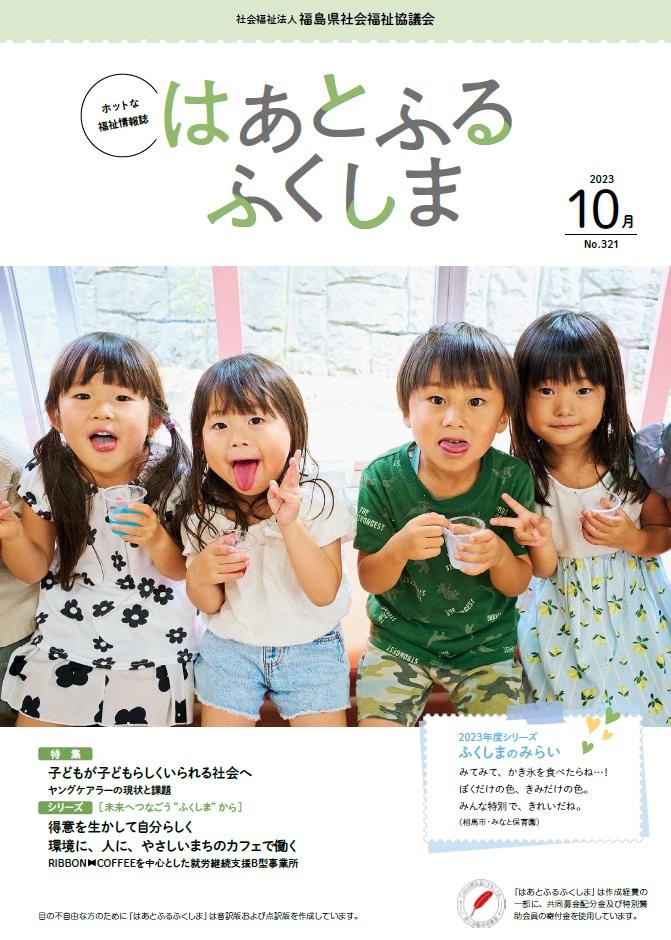 共同募金の配分金により「はあとふる・ふくしま」を毎号10,700部発行し、各地域で活動されている民生・児童委員の皆様をはじめ、福祉施設等の皆様を中心に広くお届けすることができました。今年度は県内外で災害が相次ぎましたが、地域に根差した被災地への支援や災害に備えた地域づくりの取組み、またヤングケアラーの現状と課題、福祉人材の定着につながる介護支援ロボットの活用など、タイムリーな情報をお伝えすることができました。読者の皆様からも、「本誌を読んで初めて知った課題についてもっと地域に目を向けようと思った」、「これからも福祉情報を広く伝えてほしい」といったお便りをお寄せいただいております。このように、より多くの皆様に自分の地域や福祉に興味・関心を持っていただき、地域共生社会の実現に向けた地域福祉推進の一助となるべく弊誌を発行できますのも、寄付者の皆様のお蔭でございます。心より御礼申し上げます。