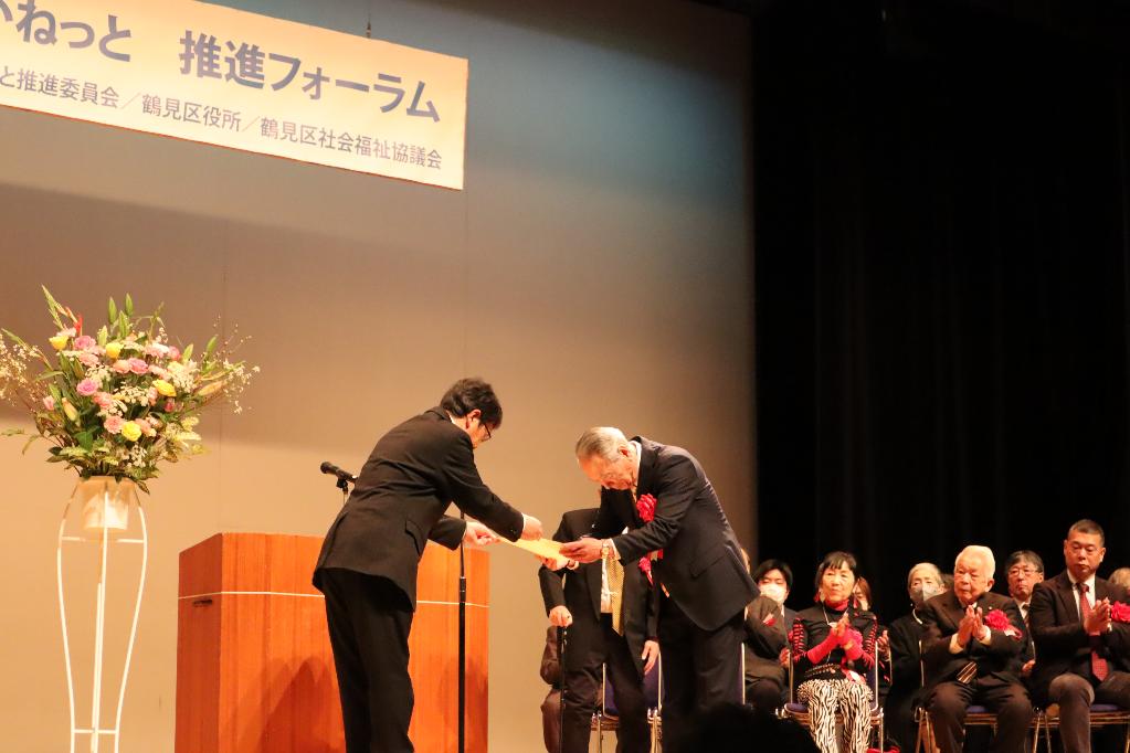 2月に行われたあいねっと推進フォーラムにて、鶴見区内で地域福祉活動に貢献した方へ、表彰状および感謝状を贈呈することができました。