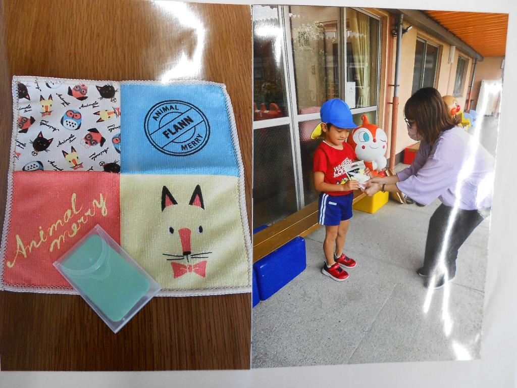 この度もご支援いただき、ありがとうございました。園児達はかわいいハンカチと紙せっけんの好きな色を選び「公園に持っていく!」と大喜びでした。