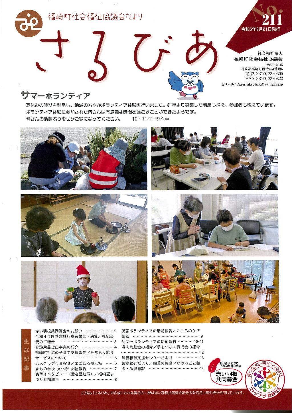 福崎町社会福祉協議会では広報誌「さるびあ」を2か月に1度発行しています。募金してくださった皆様のおかげです。