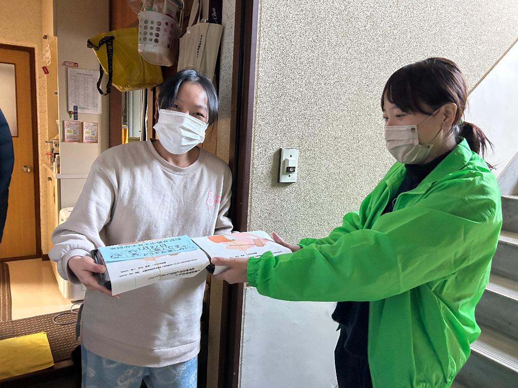 市内在住の概ね75歳以上の見守りが必要な一人暮らし高齢者や高齢者のみ世帯、または、障がい者のみの世帯の57名、及び支援を受けられない産前産後の母子のいる世帯26名に安否確認を兼ねた弁当を配付した。令和3年度よりふれあい弁当事業を市内社会福祉法人施設と連携したことで、共同募金の財源であることを周知し、法人への共同募金に対する理解を深めた。