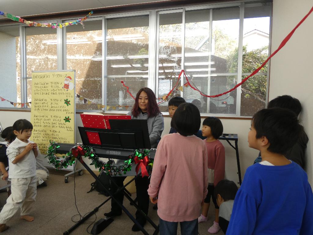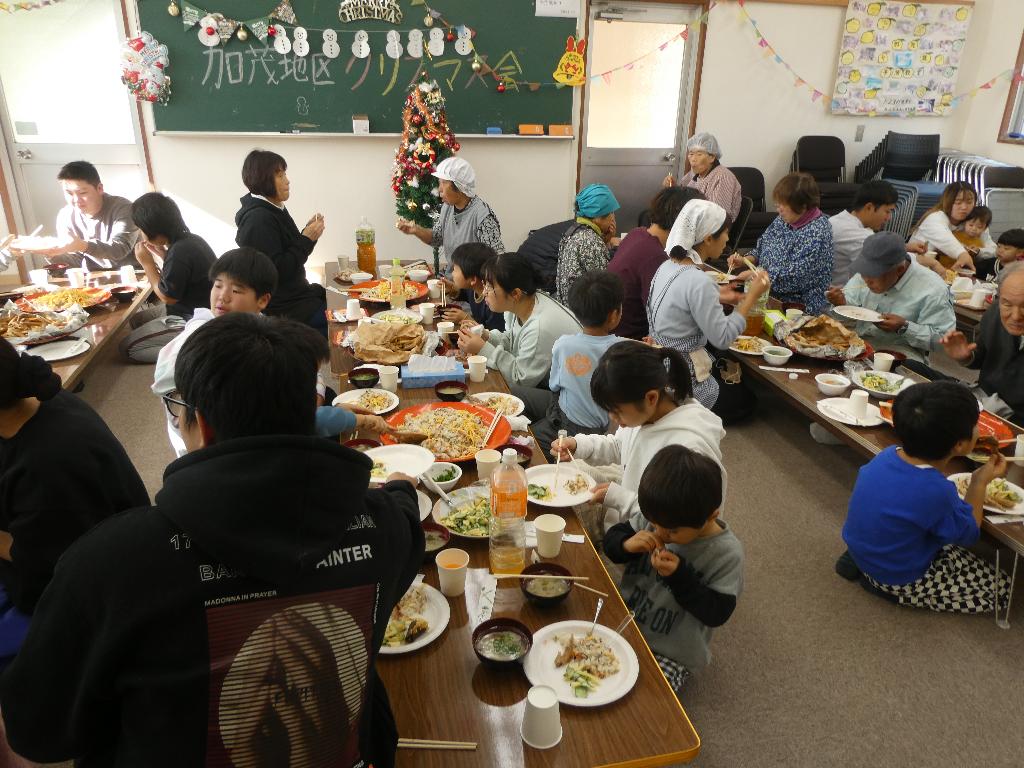 地域住民、子ども会、ボランティアさん、保護者が協力して、加茂地区子ども会のクリスマス会を実施する。
