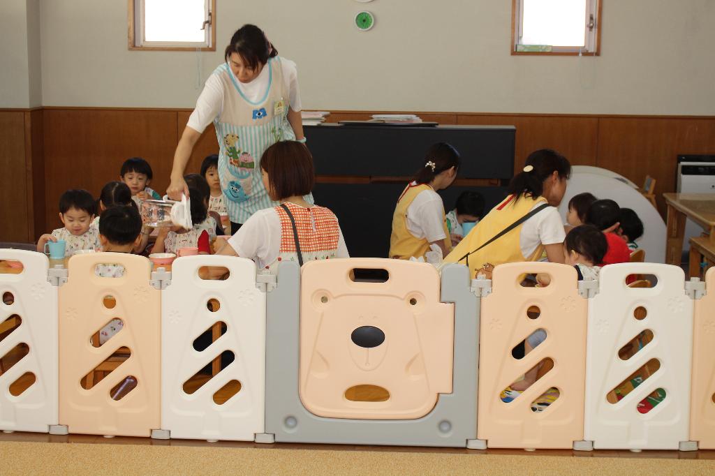 この度は、配分金により支援が必要でありながら公的措置の届かない子ども達の為に、棚、パーテーション、食器等の整備をさせていたたぎ有難うございました。新しくバーテーションが設置できたことにより、保育室とプレイルームやランチルームとの区切りができ安全に遊ぶことができるようになり、また、アレルギー児の対応として安心して給食の片付けができるようになりました。新しい電子レンジ、フードプロセッサーは素早くおかゆや刻み食を作ることができ、給食準備の時間短縮ができました。新しい食器で毎日楽しく給食を食べることにより、子ども達の食事面を中心に心身の健康育成にも十分な効果をもたらすことができました。皆様の善意に深く感謝申し上げます。
