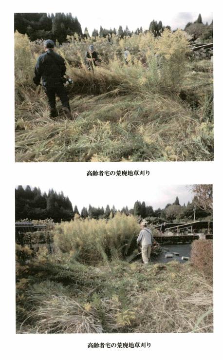 地区の多目的グラウンドの芝生広場やガーデニング芝生(宅地)等、雑草対策の為、除草剤散布や一人暮らしの高齢者や高齢者世帯の、宅地雑草を草刈りなどをボランティアで行っています。