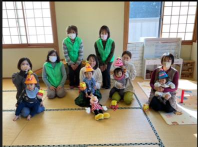 一の宮子育て支援センターにて子育て支援、小学校絵本の読み聞かせや保育園、幼稚園に手作り雑巾・足マットの寄贈、阿蘇神社駐車場の花壇の花づくり。