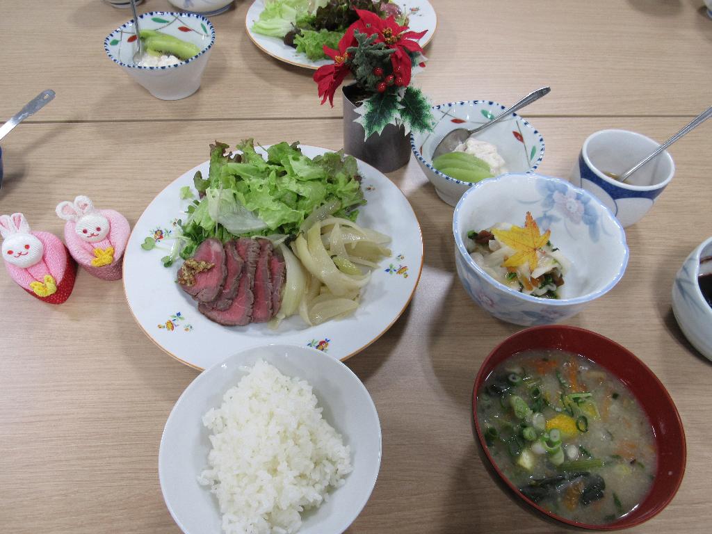 栄養士さん、地域のヘルスメイトさんにご協力いただき「自然の恵みで体を守る!」をテーマに、野菜たっぷり、のどに良い食べ物もたっぷりの料理を調理しました。調理後は参加者の皆さんテーブルを食事を取りながら交流を図りました。本格的に寒くなってくる時期、習った事を参考にしながら、みなさん元気に過ごしていただけたらと思います。