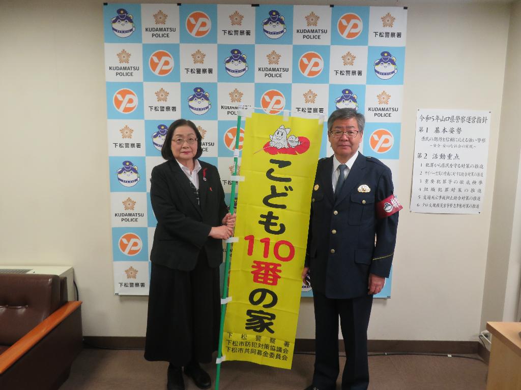 下松市内各校区子ども会へ活動費と子ども110番旗の作成を行いました。