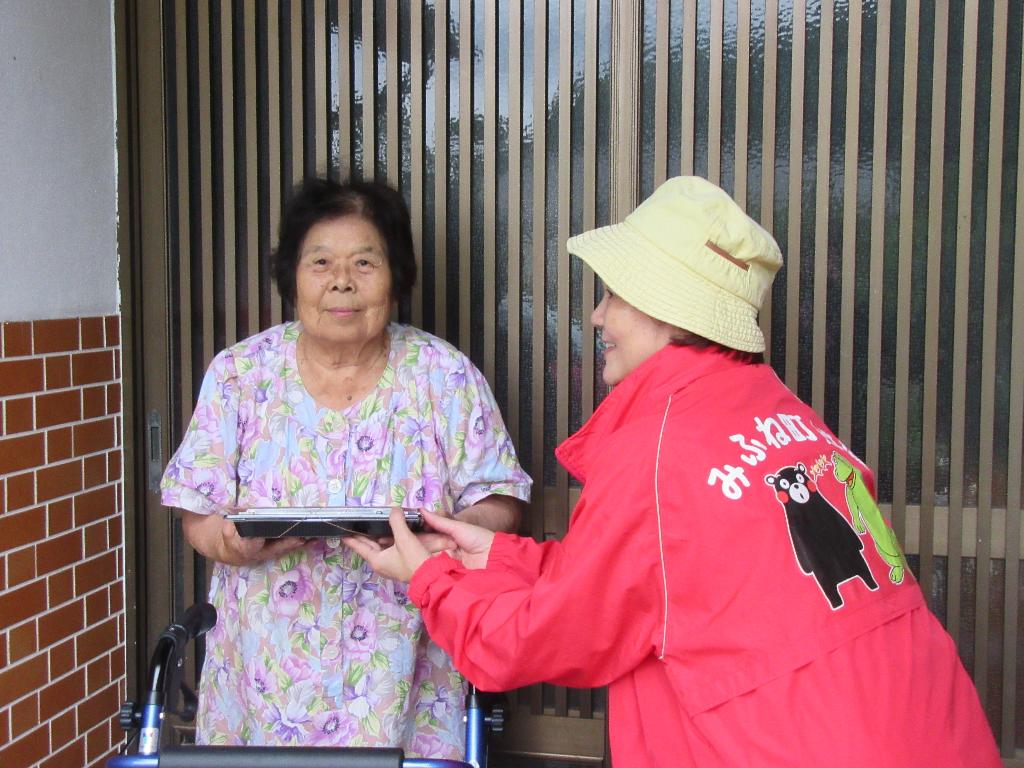 町の弁当組合からのお弁当を配食ボランティアや福祉協力員に依頼して、各利用者宅へ届けていただきました。一人暮らしの利用者も多く定期的な訪問は安否確認をかねており、ボランティアや福祉協力員、民生委員と会話することを毎週楽しみにされています。
