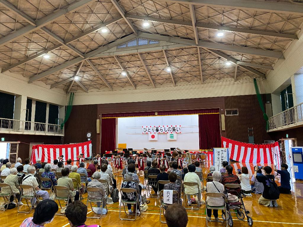 村内の一人暮らし高齢者を一同に招き、高齢者同士の仲間作りや一人ひとりの孤独感を和らげ閉じこもりや寝たきり防止を目的に行う。また民生委員・保健師・福祉関係者とのふれあいの機会の場を提供し、日常生活上の悩みや相談に応じる。