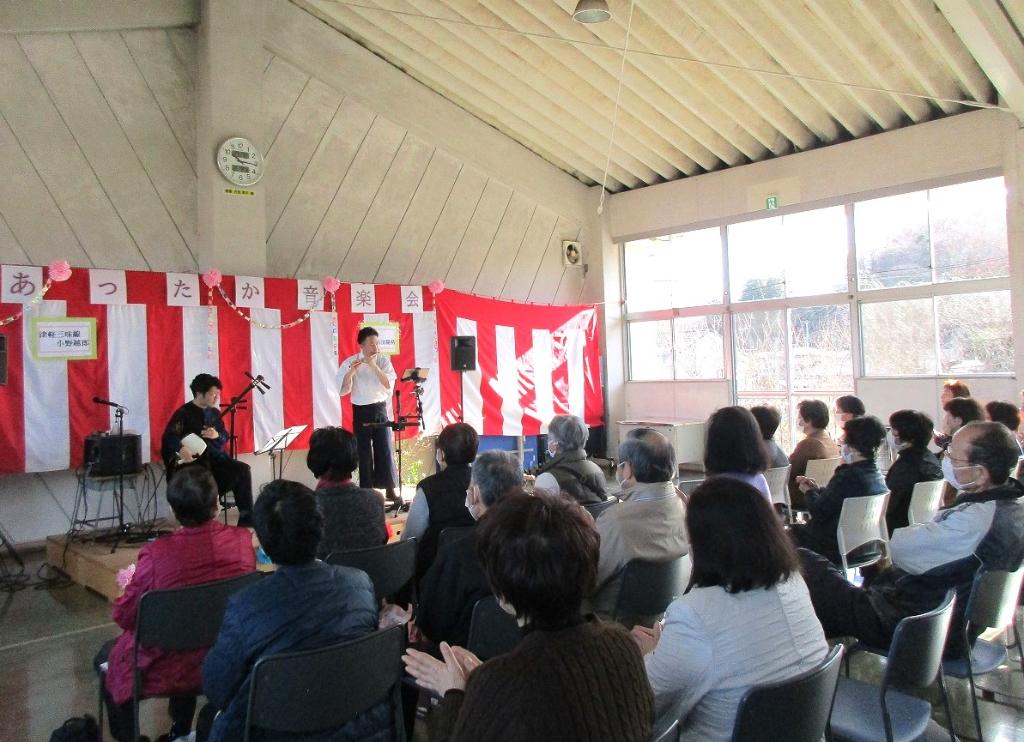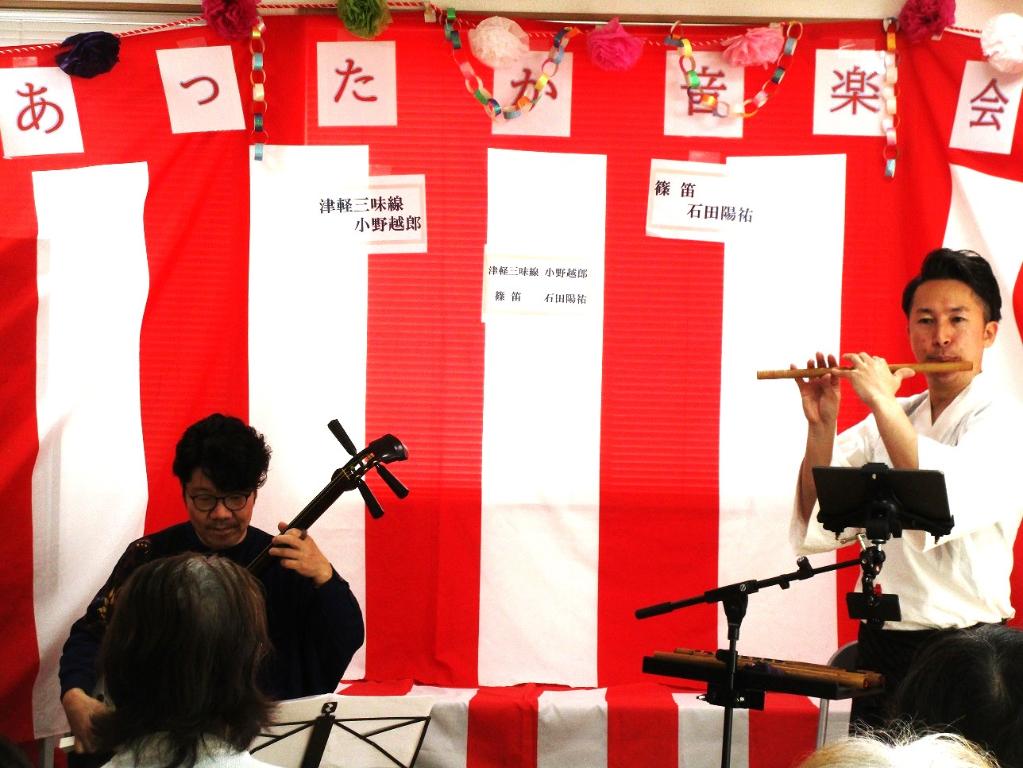 助成金を受けたことで演奏者2名を招聘できました。三味線演奏者とそのつながりで篠笛演奏者を招きコラボ演奏。初めて聴くその音色に参加者は「とても良かった、また聴きたいね」とたくさんの笑顔が溢れていました。民児協、老人会の協力もいただき実施できたことも大きい。地域住民交流の機会となりました。ありがとうございました。