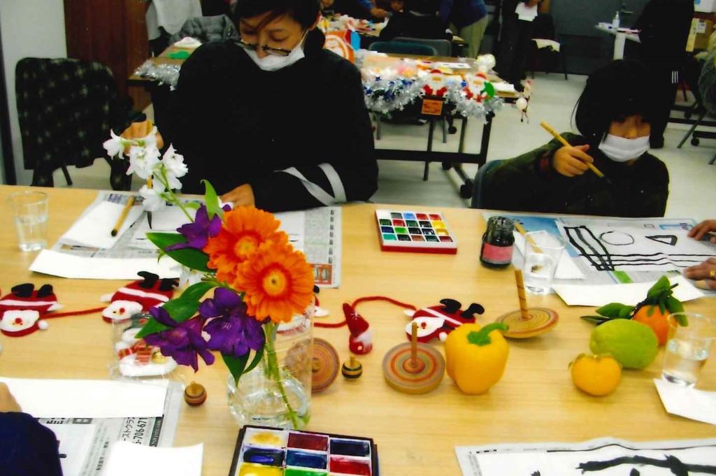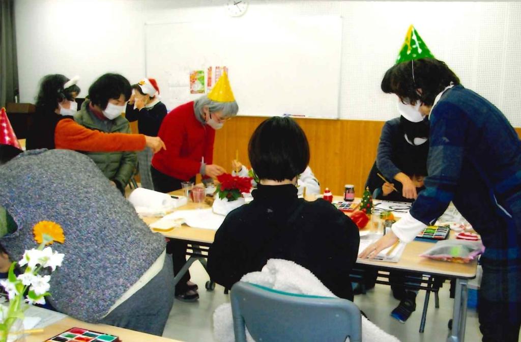 ①月1回高齢者及び障がい者の方へ季節の絵手紙を届けています。②月1回「ふれあい弁当」包装用絵手紙を描いています。③去年12月25日「クリスマスボランティア体験」に参加しました。