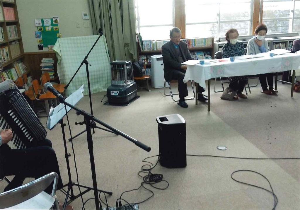 R4年11月9日(水)歌声喫茶 R4年12月11日(日)知井クリスマス会 ・今アではクリスマス会は子ども中心で開催していたが、地域の人やカナリアのメンバーに呼びかけて、盛大に実施できたのは良かった。楽しく元気の出る会になった。R5年1月23日(月)歌声喫茶 R5年3月27日(月)歌声喫茶 毎回、中野里司さんにアコーディオンで伴奏してもらっている。