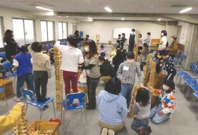 島津アリーナ京都の会議室を利用して、北欧の積み木「カプラ」を用いたワークショップを実施した。20組計50名の大人・子どもが参加し、積み木で作品を作り遊びに興じた。