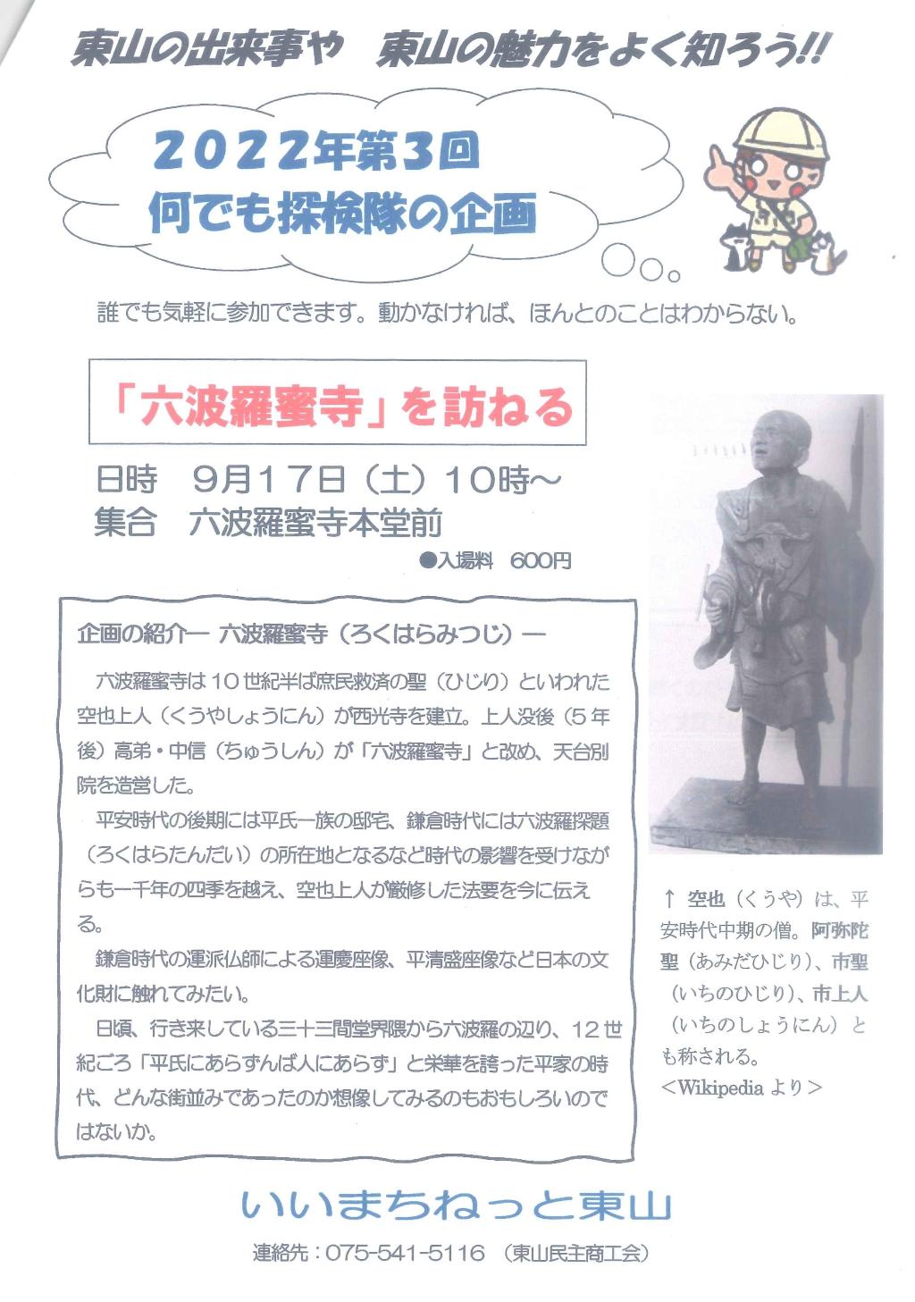 東山区の「まち」の変化、「文化、自然環境」の変化について調査、研究、発信、学習を行い、住民主体のまちづくり、防災について寄与する。専門家の協力の下、まちづくり、交通、すまい、環境などに関する情報収集を行う。