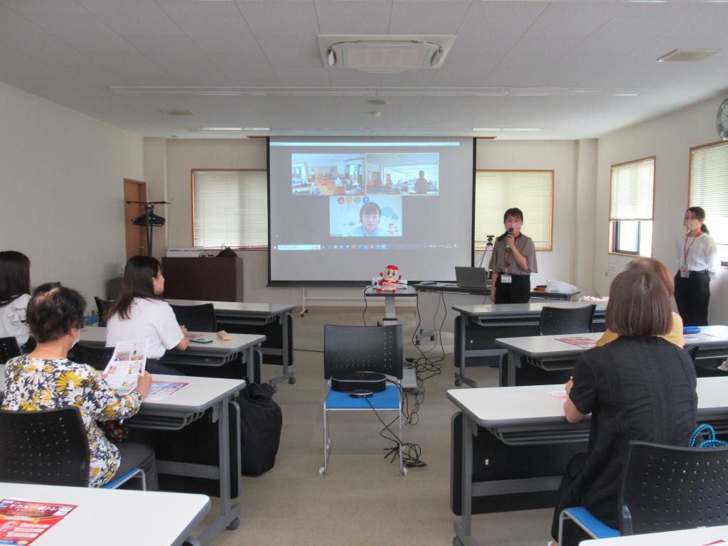 Zoomを活用してヤクルト本社富士裾野工場と六原学舎、やすらぎ・ふれあい館の3か所を結んで工場見学を実施しました。実際に工場見学へ行ったようなリアルな体験をすることができました。また、職員の方から日常の食生活に関するアドバイスも教えていただきました。