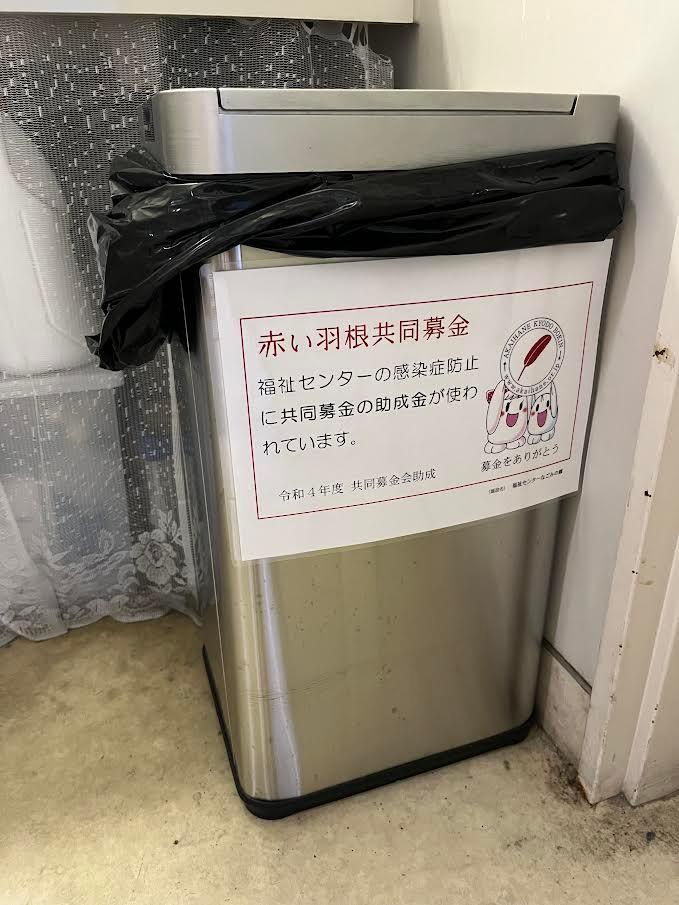 コロナ感染予防対策として、来館者の方からも、アドバイスをいただき、今回助成金を活用してセンサー付きダストボックスを設置させていただきました。コロナは収束になりつつありますが、インフルエンザ・ノロウイルス感染症などの対策にも効果が発揮されると考えています。皆様からの募金によりセンターの感染対策を講じることができました。今後も、住民の皆さんが安心して来館・利用できるセンターになるように努めていきます。