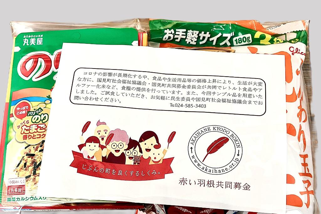 また、赤い羽根共同募金より助成をいただき、食料品をお渡ししました。