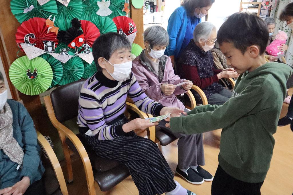 学童保育所の児童が年賀状を作成し、市内高齢者施設等へ児童代表が直接届ける