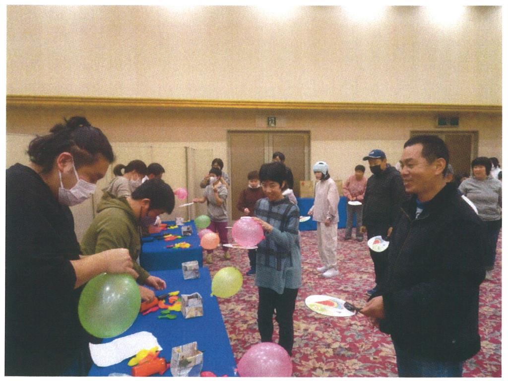 職員と一緒に3チームぐらいに分けて風船運びゲームをして大賑わいでした。