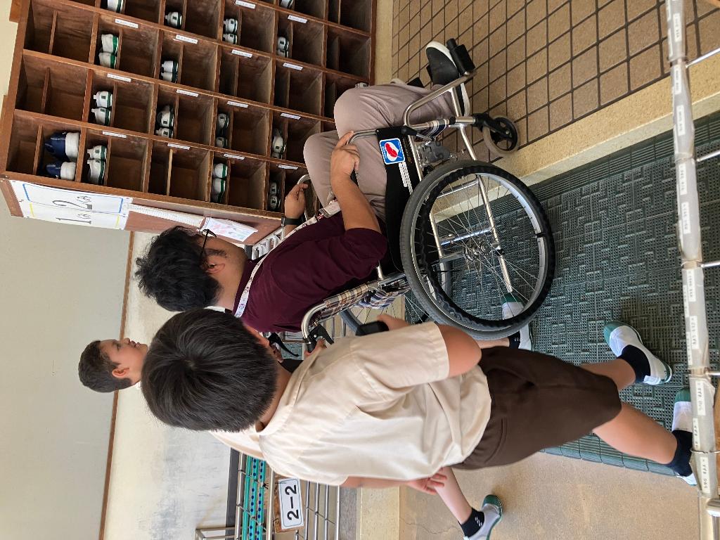 総合的な学習の時間で福祉教育について勉強しました。「だれもがふだんのくらしを幸せに生きるために」と福祉学習をしました。今回、助成金で2台車いすを購入し、実際に車いす体験をすることができました。身をもって福祉体験をしたことは、不自由について知り、自分にできることはないだろうかと考える大きなきっかけになりました。毎年、こうして学習を進めることができ、感謝しています。