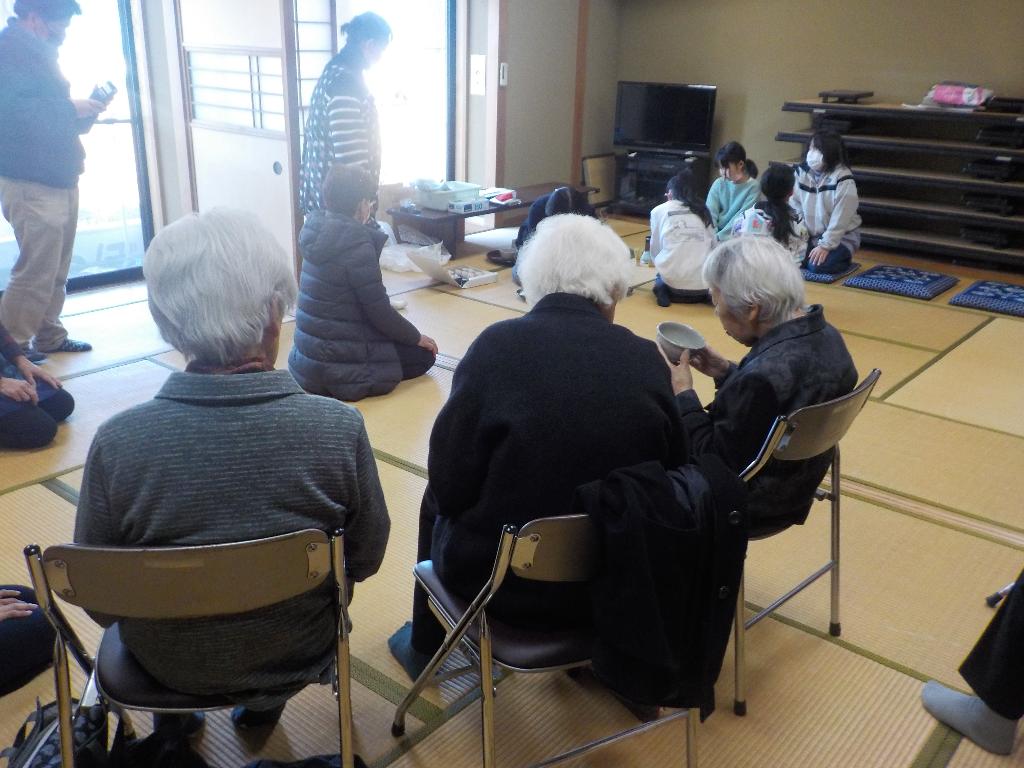 西浦地区社協は、歳末たすけあい運動の助成金を受けて、「西浦大交流会」を開催しました。宮司の神聖な新年の神事に続き、どんど焼きを行い、更に厄年の人による播き銭でこどもから大人まで盛り上がり、駄菓子屋でくじ引きやお菓子を買うという流れで大盛況でした。お茶会も開催され、お抹茶と美しい和菓子に興味津々のこどもたちが、お年寄りに教わりながらお茶をたてていました。けん玉大会も白熱し応援する人々を沸かしていました。多くの住民が参加し、協力し合い無事に開催できました。来年ももっと色々なアイディアを考え、より楽しく、より多くの住民が参加する「西浦大交流会」にしていきたいと思います。ありがとうございました。
