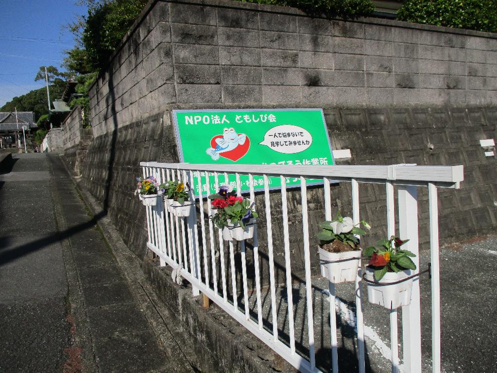 赤い羽根共同募金から助成していただき、ありがとうございました。令和6年度は大川市で開催された「筑後ブロックふれあい大会」二参加しました。他作業所さんにも1年ぶりに会い、楽しいひと時と皆さんの元気をもらうことができました。今年は三笠神社参道通りにある作業所なので、花を植え、皆さんに見てもらうようにしました。「綺麗ですね」とお声を頂き、私たちもうれしく思いました。来年も続けていきたいと思います。作業所利用者やその家族、職員一同は共同募金会に深く感謝しております。