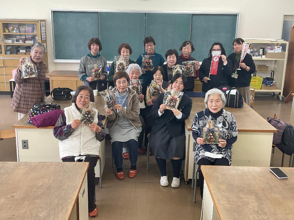 この度は温かいご支援を賜り誠にありがとうございます。皆様からのご厚意により、地域の方と高校生の交流を目的としたワークショップを2回開催することができました。1回目の活動では地域の方々と高校生が一緒にバッグつくりに挑戦しました。最初は緊張していた高校生も、高齢者の方々に優しく丁寧に作り方教え、ミシンを使いながら素敵なバッグを完成させることができました。2回目の活動ではクリスマスリースづくりに挑戦しました。教える役の高校生メンバーは変わりましたが、参加者の皆様は和気あいあいと交流を深めながら、美しいリースを作り上げ、大変喜んでおられました。これらの活動を通して参加者の方々は世代を超えた交流を深め、互いに新たな発見や喜びを分かち合うことができました。これもひとえに、共同募金会からの温かいご支援のおかげと深く感謝しております。今後もこのご恩を胸に、地域社会に貢献できるよう活動を続けてまいります。