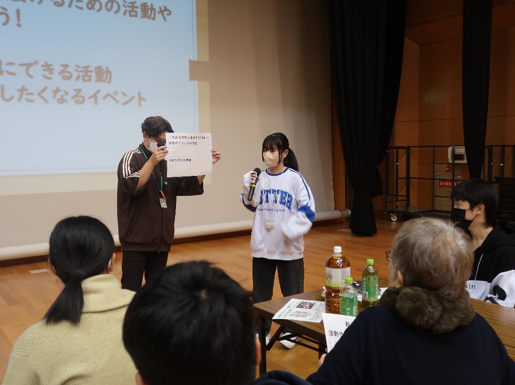 今年度は、地域で活動する民生児童委員の方とパラスポーツのボッチャによる交流、これからの地域活動やイベントなどについて話し合いを行いました。ボッチャは中学生にも大変好評で、話し合いについても普段話すことのない民生児童委員さんの話が聞けて良かったなどの意見がありました。