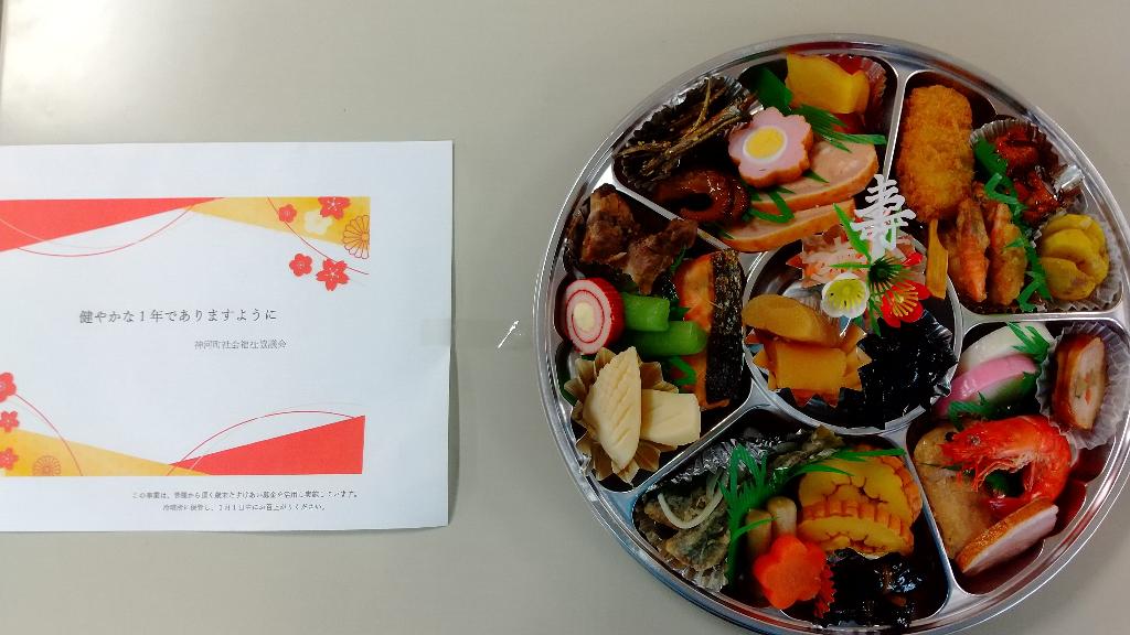 年末年始に家族や親せきの訪問が無い一人暮らしの方へ大晦日におせち弁当を配り、安心して年を越せるようおせち弁当を配付。