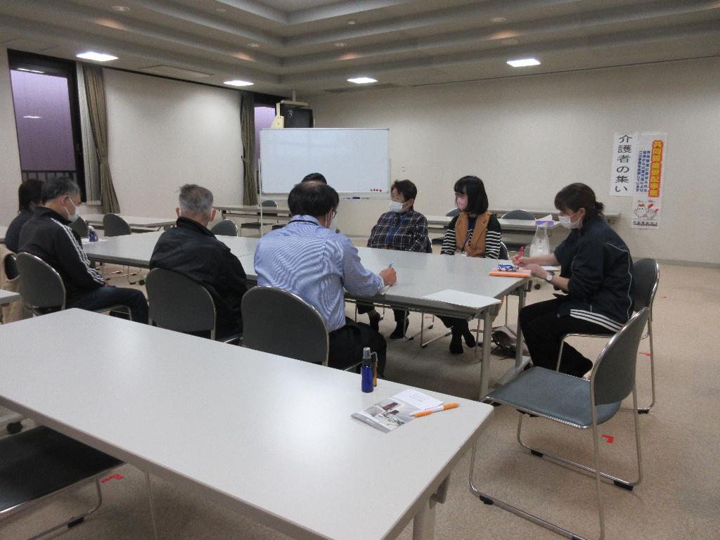 家族で介護する方々の仲間作りと介護のポイントや介護方法を学び、日常における負担のない介護を心がけていただく。また、後半はみんなで日頃の悩みごとを話し合う相談会を実施する。