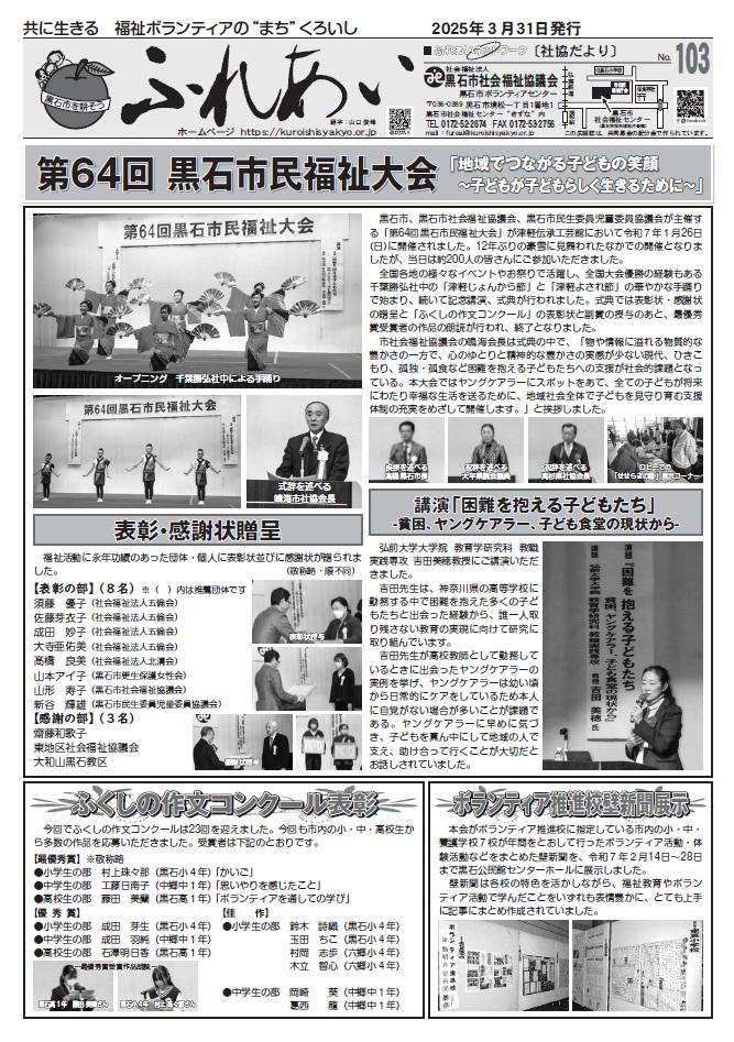 市内全世帯に社協だより「ふれあい」を年4回発行し、共同募金運動を含めた市社協や各地区の取り組み、福祉やボランティアの情報を提供することで、地域福祉活動への理解と啓発を促すことができました。ありがとうございました。