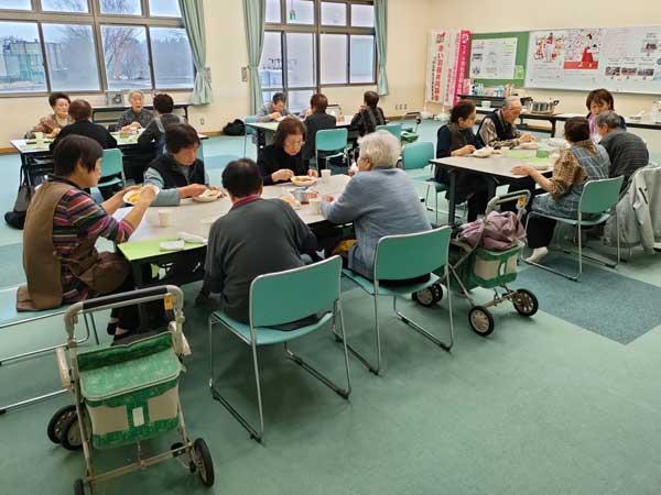 地域の一人暮らし高齢者、高齢者のみ世帯等を対象にした食事会。地域のボランティアが参加者への声掛等で協力してもらう。