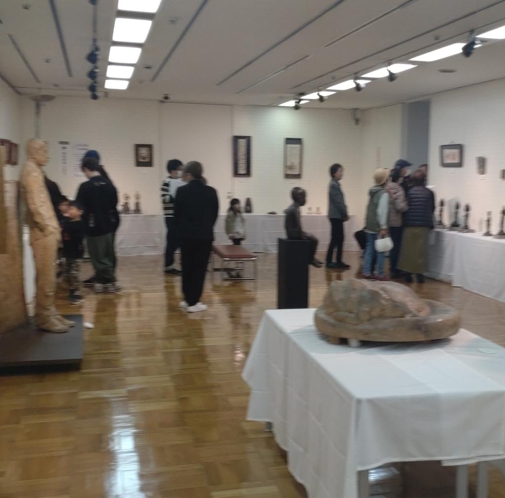 この度、赤い羽根共同募金の助成をいただき、「触ってみよう、作ってみよう、みんなのアート」を開催いたしました。今回の美術展は彫刻に加え、絵・書を展示し、3名の作家さんの作品の展示をしました。「子供と来ました。直接作品に触れる美術展は初めてで、親子共々良い経験になりました。」「音声案内を聞きながら鑑賞できるのは良かったと思いました。」など、直接作品に触れ、材質の違いや温かさを感じながら鑑賞されて喜ばれて見られました。