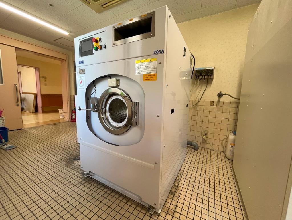 障害者支援施設光輝舎では、利用者さんの衣類や寝具を清潔に保つために毎日約50名分の洗濯を行っています。平成13年の開所から業務用洗濯機を使用してきましたが、既存のものが経年劣化により使用できなくなり、家庭用洗濯機で代用していました。