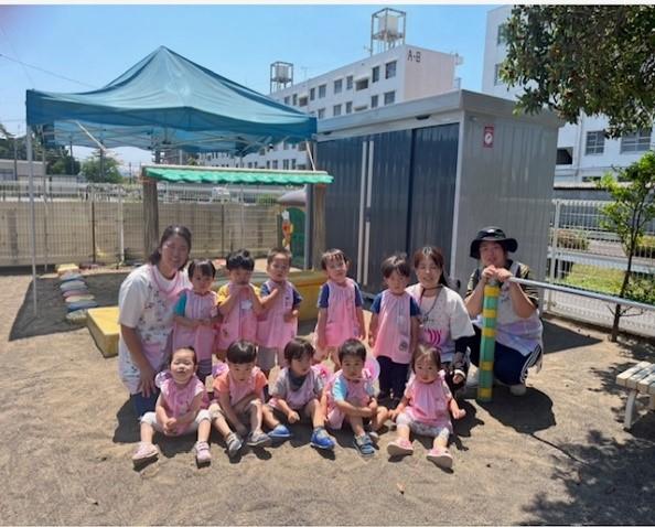 認定こども園片浜桜は、幼児施設(プレスクール)とナーサーリールーム(幼児施設)があります。このたび、経年劣化に伴いドアの開閉も大変になっていた我が園の倉庫が「赤い羽根共同募金」の助成により、新しく立派な、使いやすい倉庫になりました。遊具の出し入れもスムーズになり、2階から工事を見守った子ども達はとても嬉しそうで笑顔いっぱいでした。